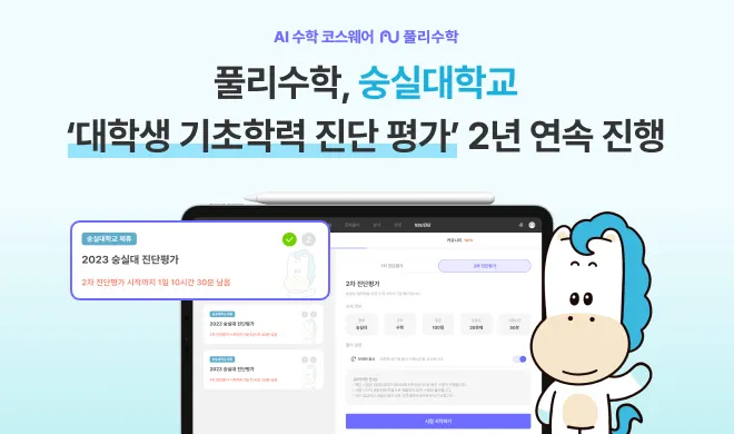 프리윌린의 AI 수학 코스웨어 ‘풀리수학(Pulley)’이 숭실대학교에서 ‘대학생 기초학력 진단 평가’를 작년 이어 2년 연속 진행했습니다.