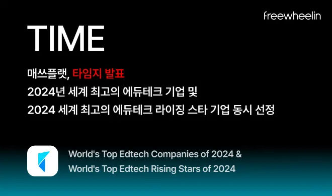 매쓰플랫이 미국 타임지(TIME)가 발표한 ‘2024년 세계 최고의 에듀테크 기업(TIME World’s Top EdTech Companies of 2024)’ 및 ‘2024년 세계 최고 에듀테크 라이징 스타(TIME World’s Top EdTech Rising Stars of 2024)’에 동시 선정됐습니다.