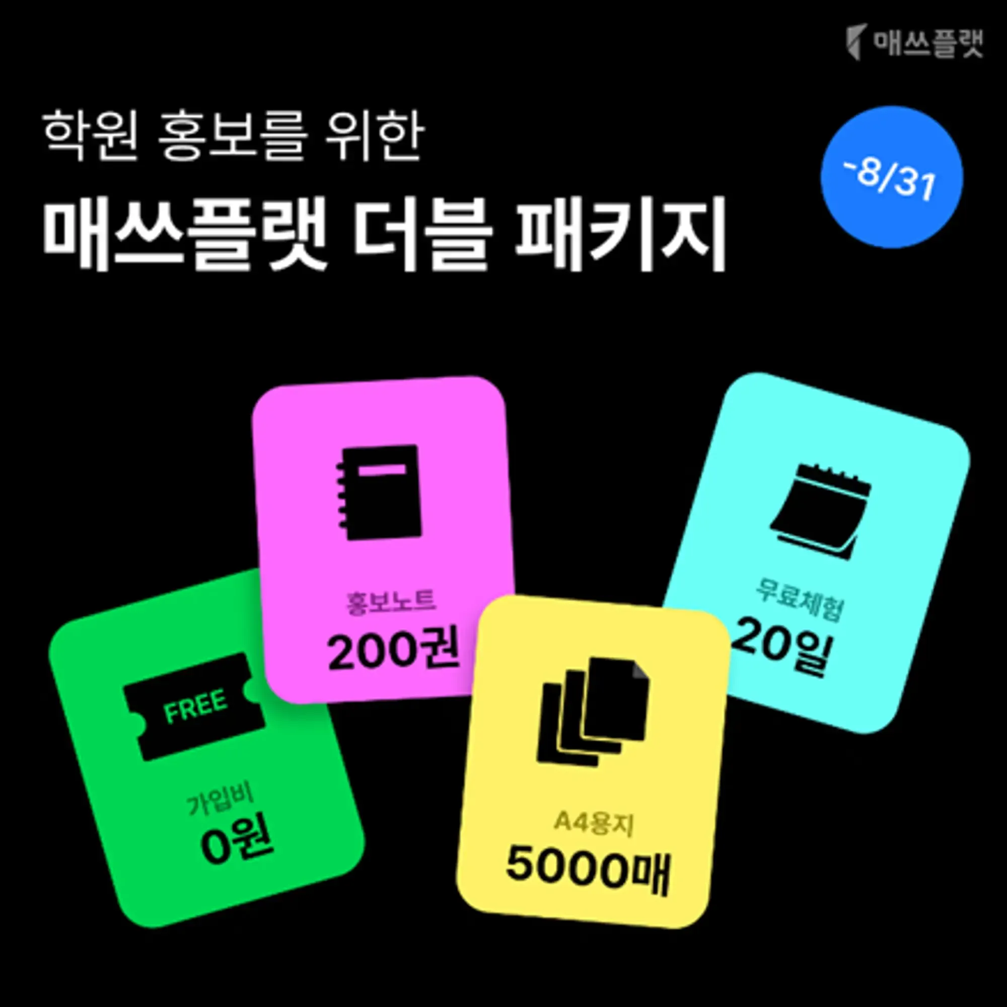 2023년 8월, 학원 홍보에 어려움이 있는 선생님들께 도움이 되고자 홍보 패키지 프로모션을 기획했습니다.