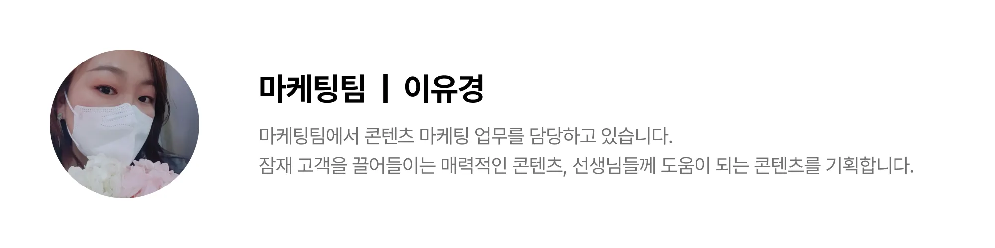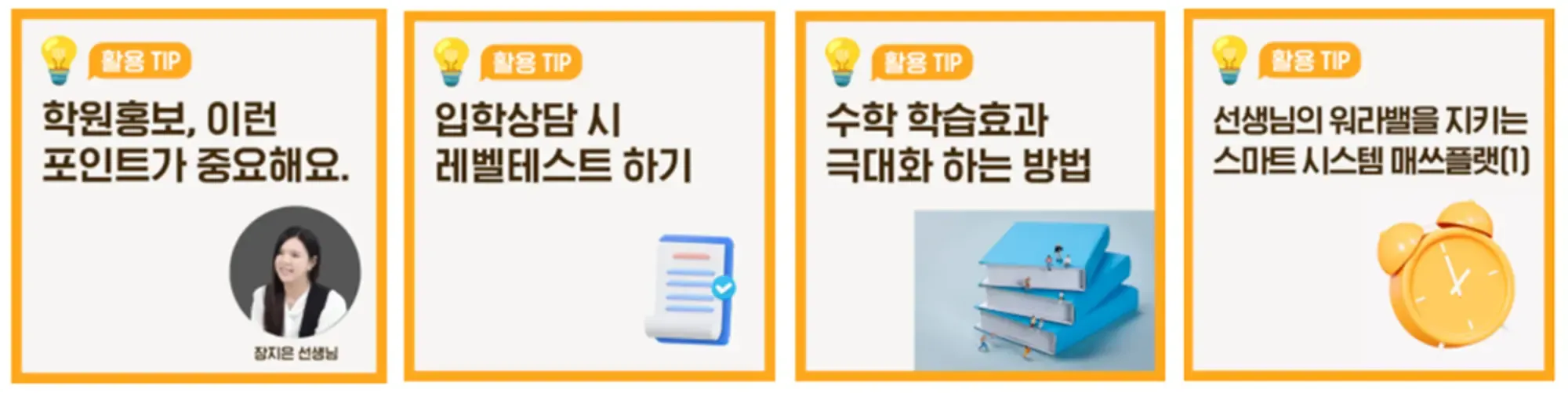 앞으로도 선생님의 학원/교습소/공부방 운영에 도움이 될 수 있는 다양한 활동과 콘텐츠를 고민하겠습니다.