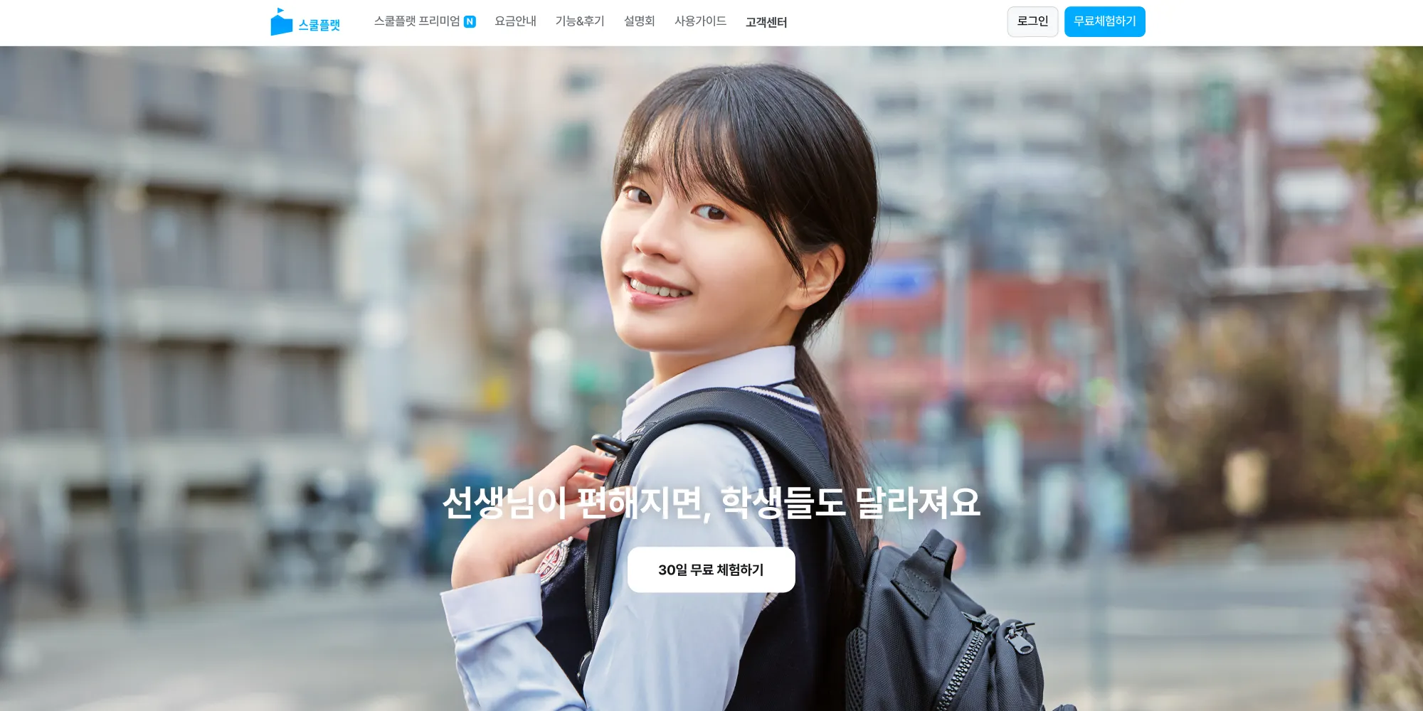 실제 외부에서의 모델 촬영 이미지에 약간의 AI 후보정을 더했다. B2G 대상의 스쿨플랫 뉴 홈페이지 메인 컷