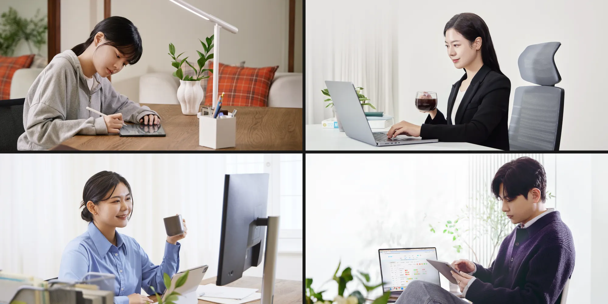 스튜디오 촬영 후의 결과물. 업무 시간을 희생해 도와주신 프로 모델 못지않은 디자이너·세일즈 팀 아래 두 분.