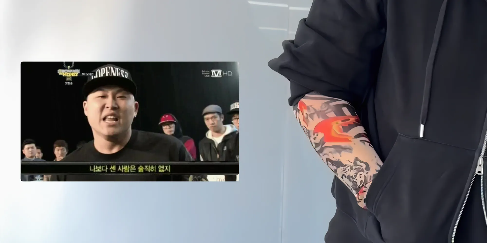 쁘띠 세션 시작 전, 겁먹지 말고 세게 나가보자며 팀원들에게 미리 주문한 문신 팔토시를 나누어주었다 (…)