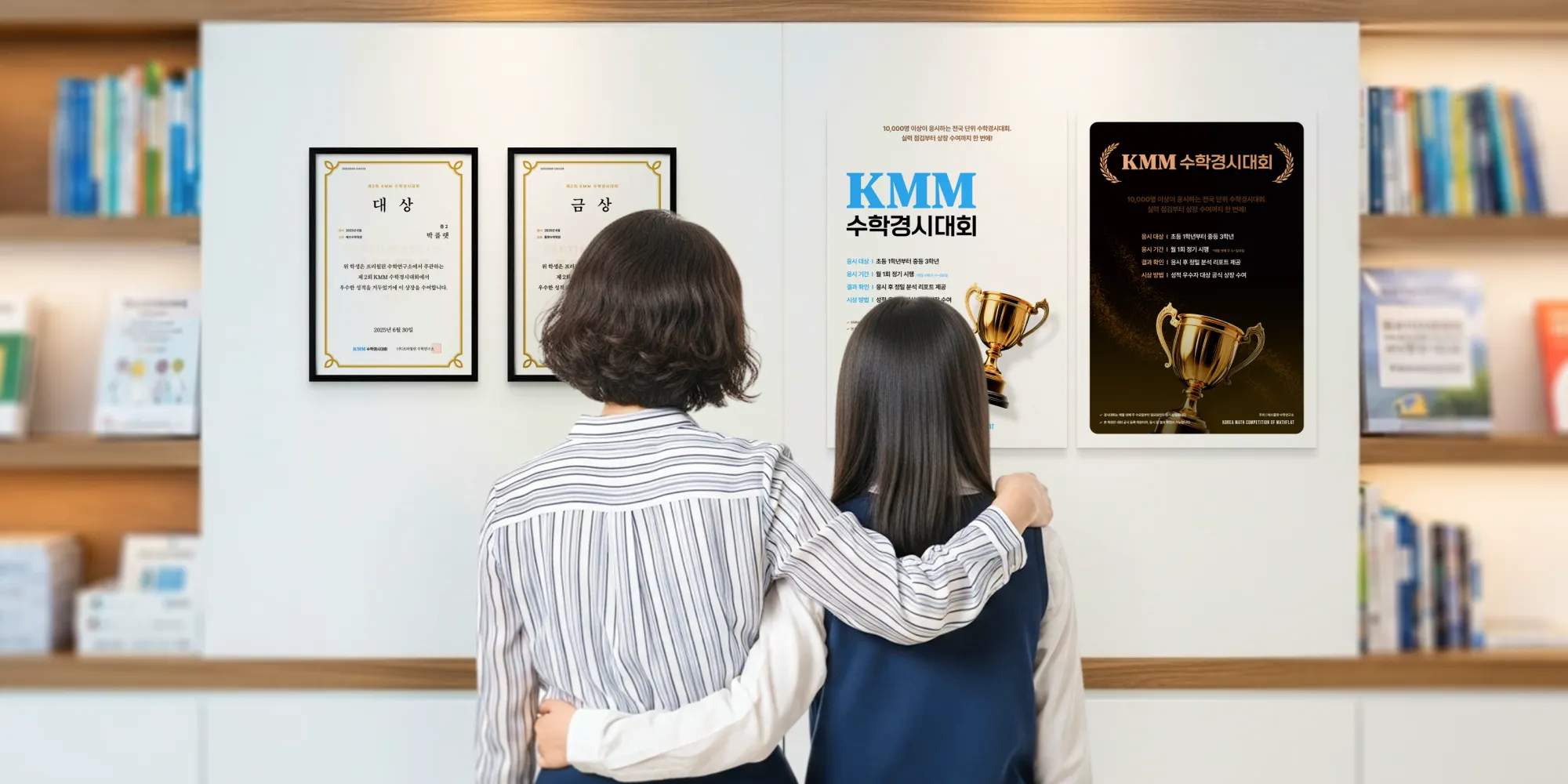 역시 AI를 활용해 실제 제작한 상장과 포스터를 목업하여 연출했다 - KMM수학경시대회
