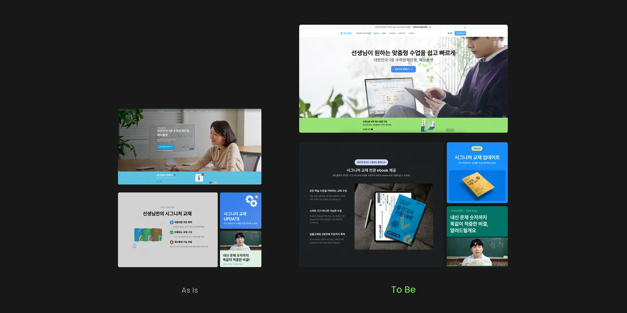 촬영 이미지를 활용한 B2B 대상의 매쓰플랫 홈페이지 리뉴얼 전후