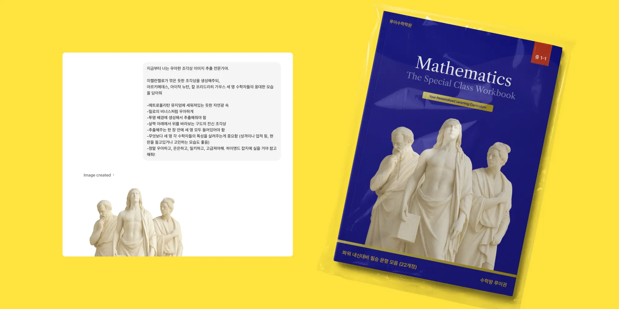 “AI를 활용해 디자인한 매쓰플랫에서 새로 출시한 교재 표지, 다시 또다른 AI로 활용해보자”