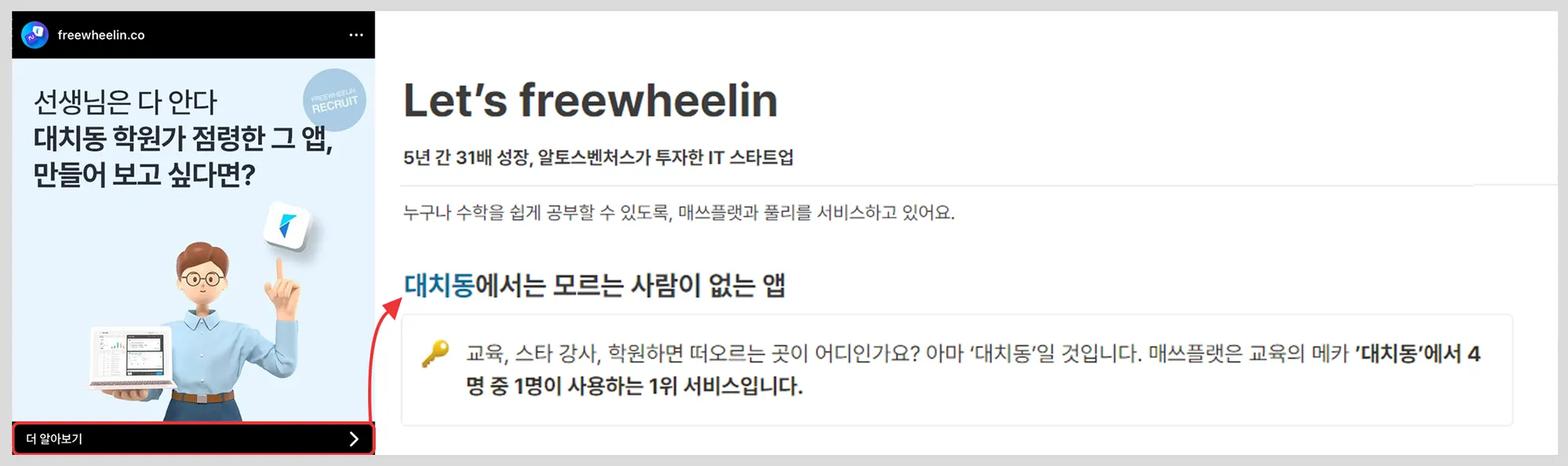 * 인스타그램 광고를 클릭하면, 광고에 대한 설명을 볼 수 있도록 채용 페이지 최상단에 적어놓았어요.