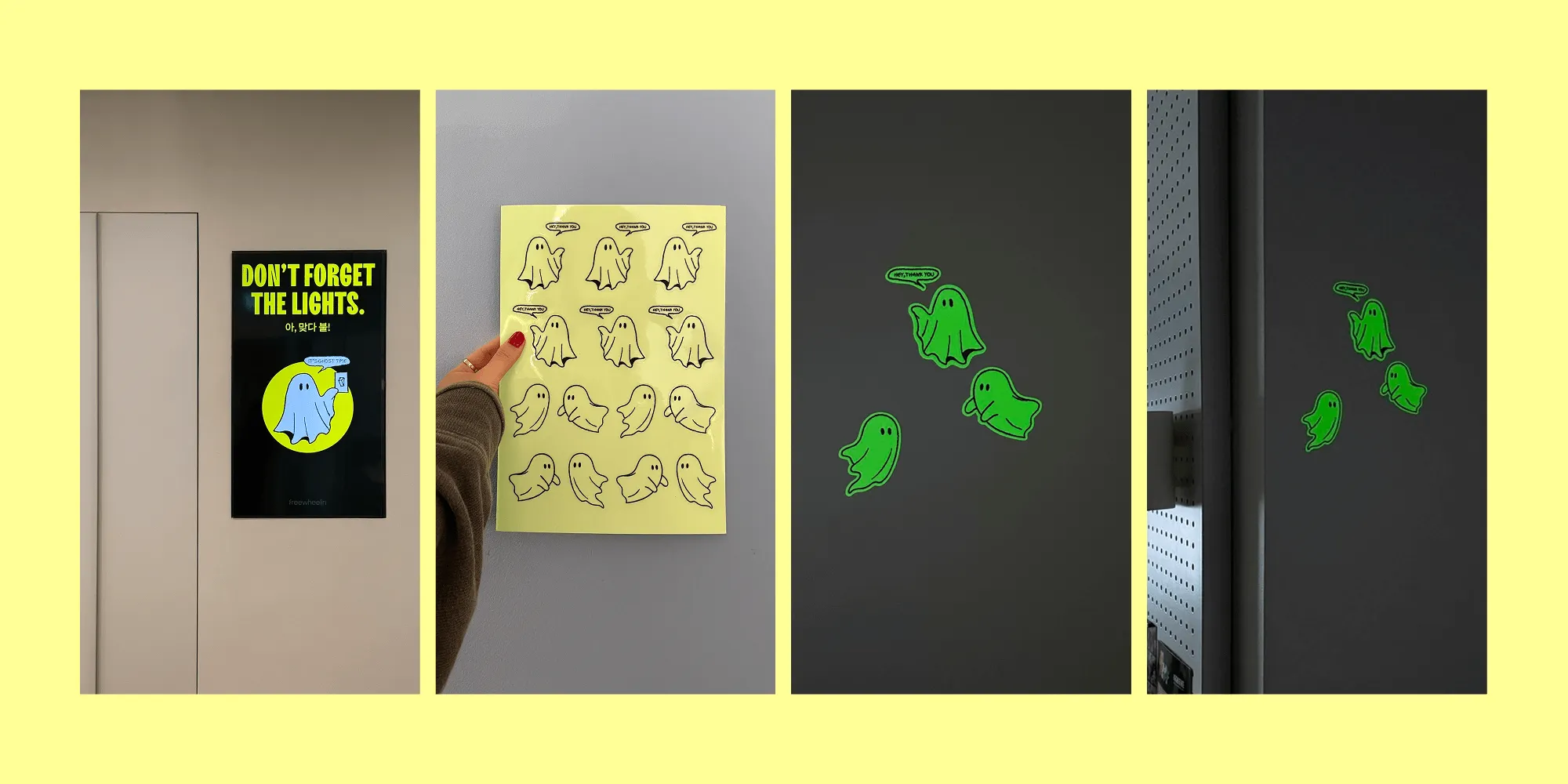 퇴근 후 불을 끄지 않고 가는 문제가 있었어요. 퇴근 후에 불을 끄고 가달라는 슬랙 공지를 여러 번 했지만, 간혹 불이 안꺼진 날들이 계속되기도 했죠. 그래서 우리는 딱딱한 지시 대신, 스토리텔링을 선택했습니다.