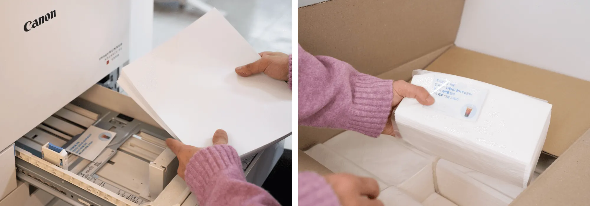 A4 용지함·핸드타올 보관함 곳곳에 쿠폰을 불규칙하게 배치