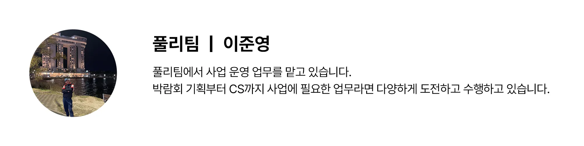 처음에는 부스에 사람이 너무 적어 박람회 운영이 의미 없게 되면 어쩌나 걱정도 했지만, 결과적으로 고관여 관람객에게는 한층 더 깊고 특별한 경험을 제공했고, 우리는 목표를 훌쩍 뛰어넘는 성과를 달성할 수 있었습니다. 그렇다면 이번 풀리캠퍼스 부스를 어떻게 운영했고, 어떤 결과를 얻었을까요? 함께 살펴보시죠.