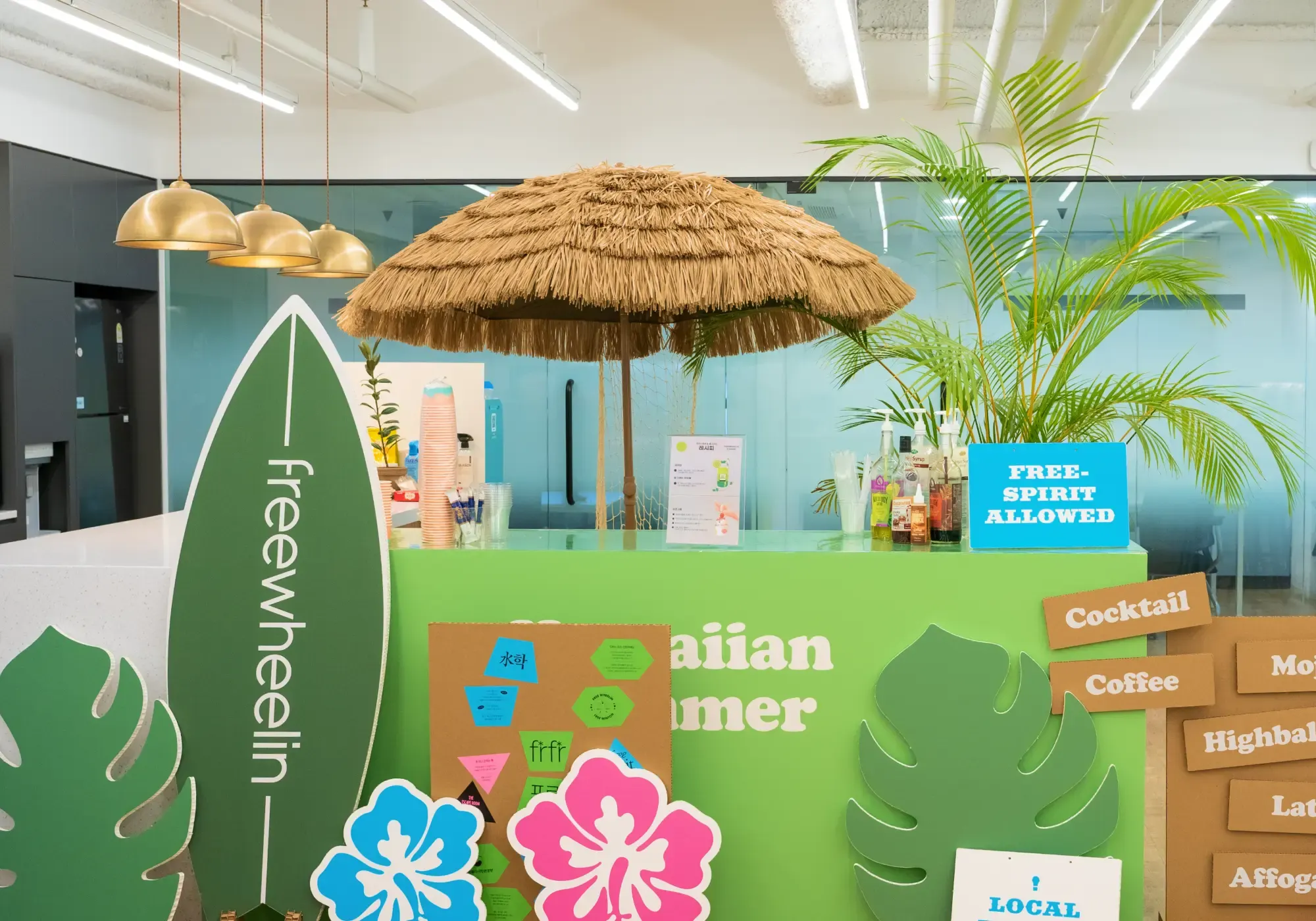 직장인에게 여름은 휴가 시즌이라는 생각이 들었어요. 그래서 회사에 출근해도 휴양지에 온 것 같은 느낌을 주기로 했습니다.