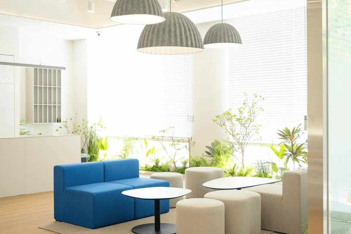 기존 라운지들도 깔끔하고 예뻤지만, 깔끔한 탓에 계속 보다 보면 단조롭다는 느낌이 들 수 있었어요. 그래서 이번 라운지 인테리어에는 가구와 조명으로