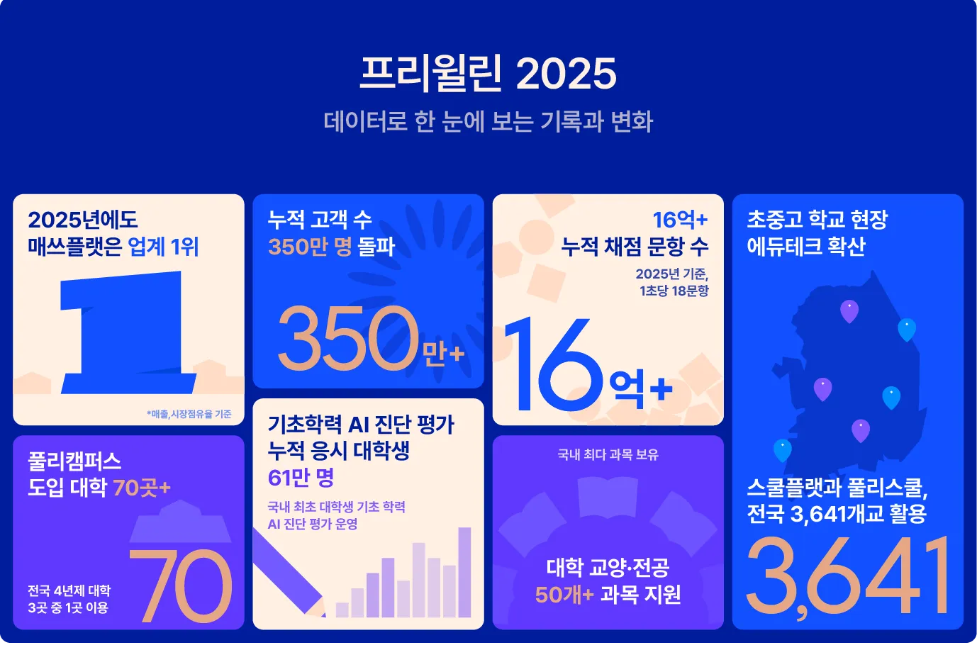 이번 실전 평가 기능 강화로 매쓰플랫은 최근 진행한 3,984권의 업계 최다 시중 교재 지원에 이어, ‘교재 커버리지+실전 평가’라는 투트랙 전략을 완성해 나갈 계획입니다.