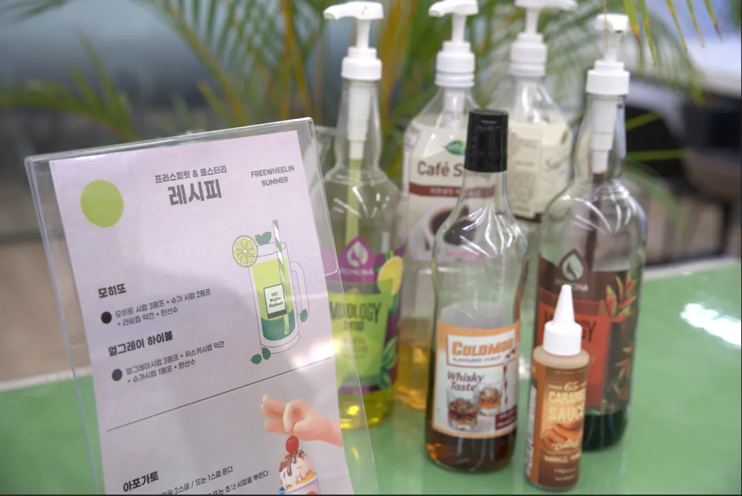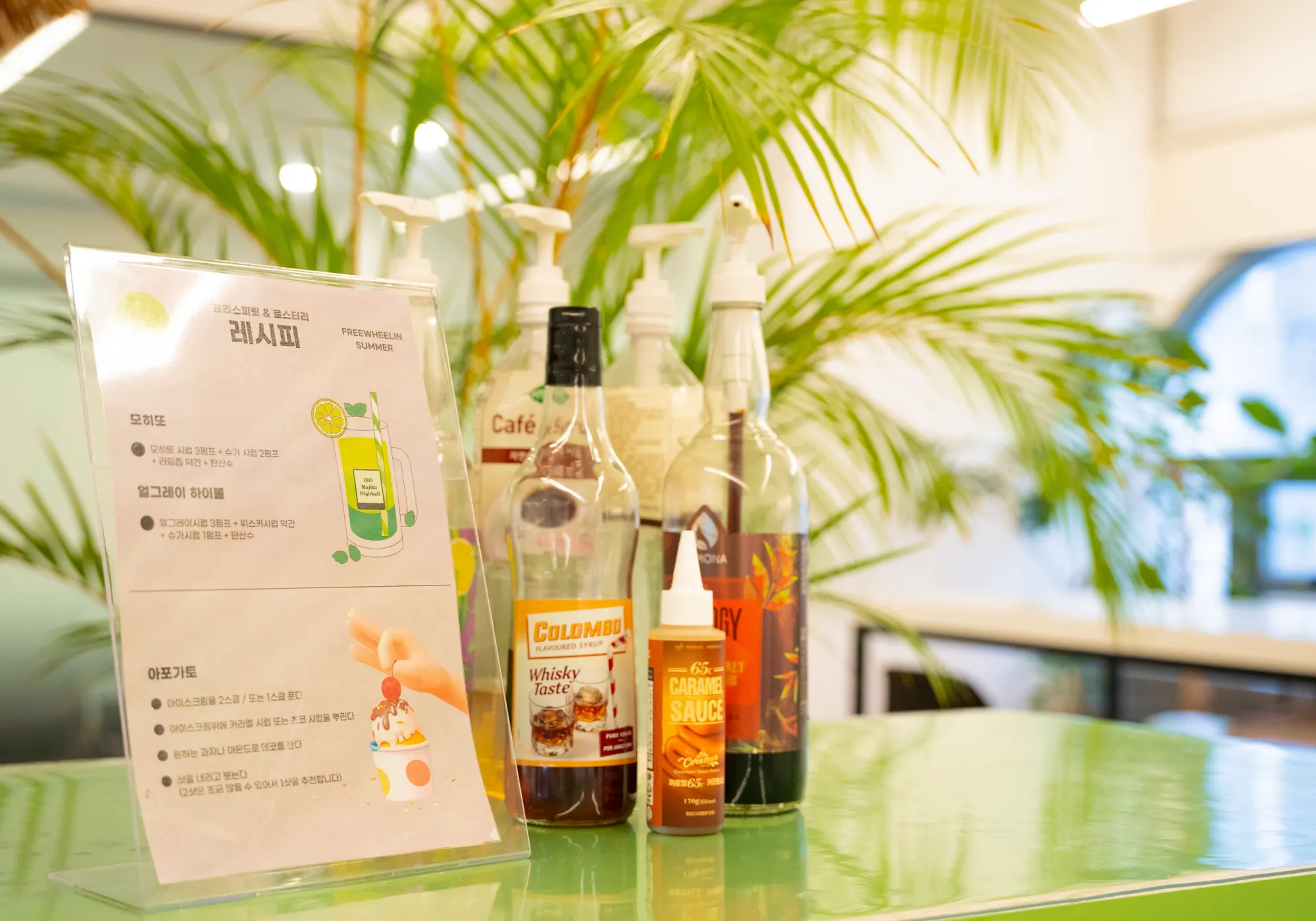 팝업이 끝났다고 해서 힘들게 만든 펍을 그냥 놔둘 수는 없죠! 각 프리팸에게 이번 팝업 음료의 레시피를 받아 재료와 함께 구비해두었어요. 누구나 바텐더가 되어 음료를 만들 수 있도록요. 팝업은 끝났지만, 여름이 끝나기 전까지 멋진 펍은 계속될 거예요!