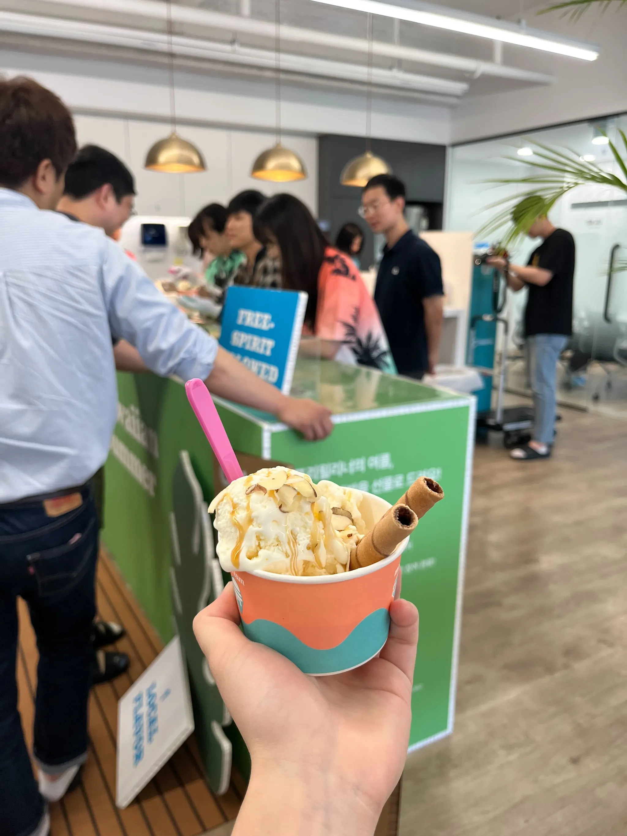 이후 3, 4일 차에는 커피 동호회인 '프리윌린 로스터리'에서 아포가토와 아이스크림 라떼를 준비했어요. '로스터리 프리팸'은 주문자의 닉네임을 받아서 닉네임으로 불러주는 센스까지 보여줬어요! 덕분에 CEO 기성쌤은 오지 않았는데도 계속 이름이 불리는 해프닝도 있었답니다